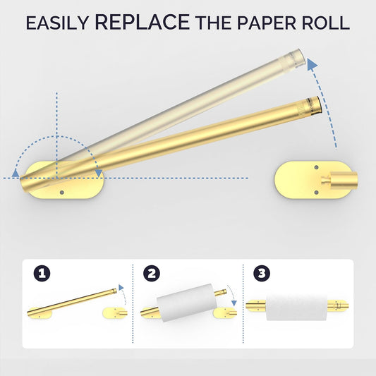 Paper Towel Holder Under Cabinet, Self Adhesive or Wall Mounted SUS304 Stainless Steel Paper Towel Holder for Kitchen, Farmhouse, Barbecue and Laundry (Brushed Gold)
