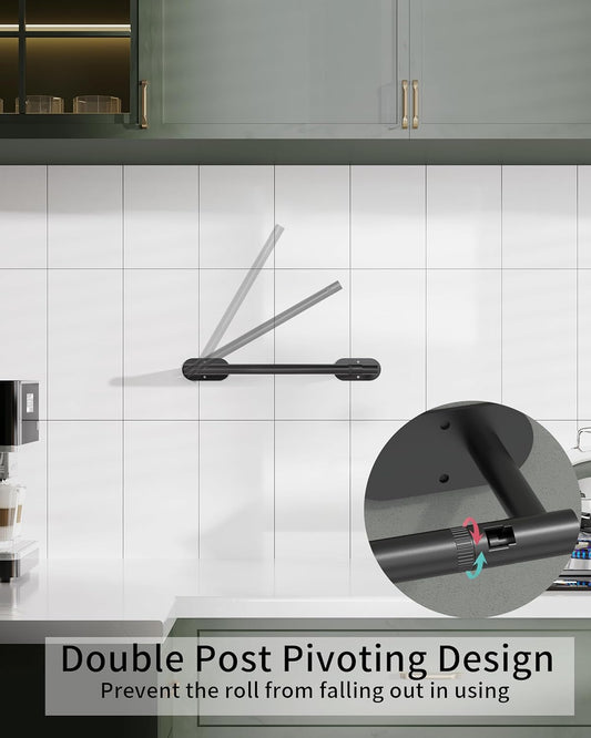 Paper Towel Holder Under Cabinet, Self Adhesive or Wall Mount for Kitchen Bathroom, Stainless Steel Paper Towel Holders with Damping Effect, Single Hand Operable (Matte Black)