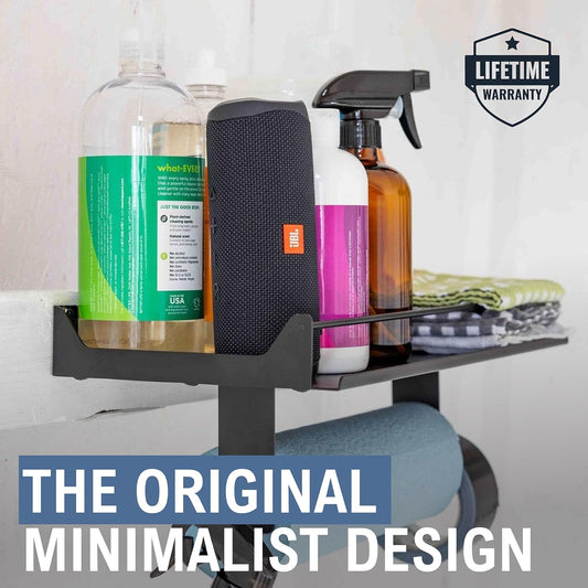 StoreYourBoard Paper Towel Holder Wall Mount with Garage Shelf – Heavy Duty Garage Wall Shelving and Utility Shelves for Workshop Organizers, Paper Towel Storage, & Shelf Use - Black