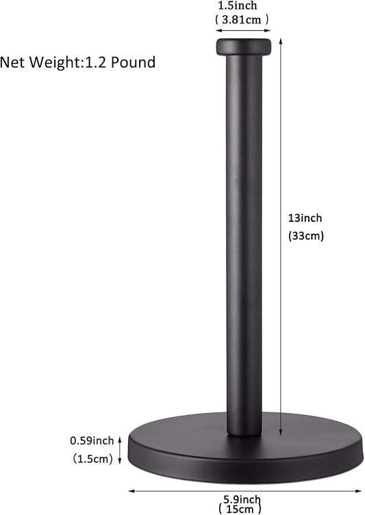 Stainless Steel Paper Towel Holder, Black Countertop for Kitchen Bathroom, Standing with Weighted Base