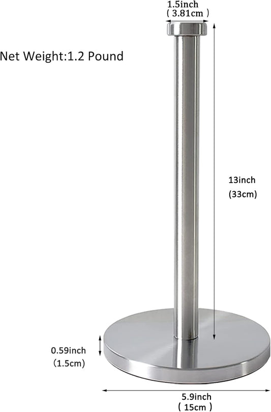 Silver Paper Towel Holder, Stainless Steel Countertop with Weighted Base
