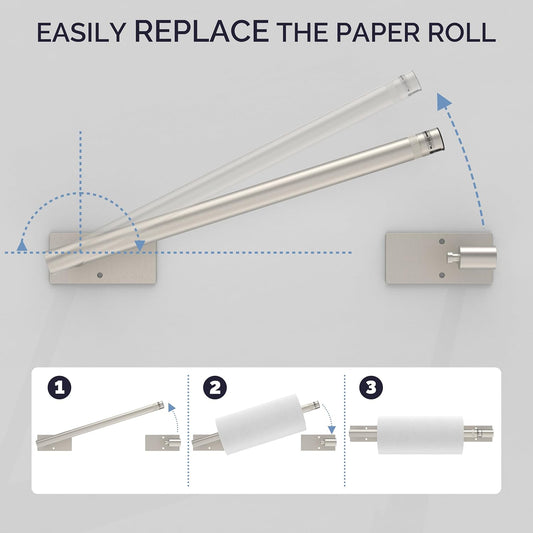 Ruacq Brushed Nickel Paper Towel Holder Self Adhesive Double Post Pivoting Round Base Under Cabinet Paper Towel Holder for Kitchen Self-Adhesive or Drill mounting