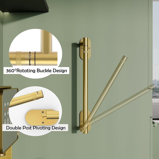 Ruacq Brushed Gold Paper Towel Holder Double Post Pivoting Round Base Under Cabinet Paper Towel Holder for Kitchen Self-Adhesive or Drill mounting