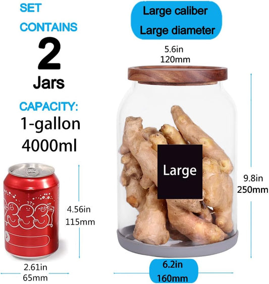 SAIOOL 1 Gallon Glass Jar with Wooden Acacia Airtight Lid,Large Glass Storage Jar set of 2, BPA-Free Cereal Dispenser Jars for flour,Spaghetti Pasta, Powder, Tea, Coffee