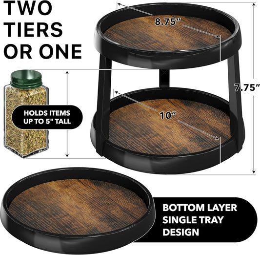 Simple Houseware 2-Tier Lazy Susan Spice Organizer, 10-Inch Diameter, Rustic Brown