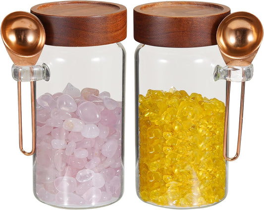 Glass Jars with Spoons Sugar Coffee Canister Round Glass Food Storage Jar for Spice Pantry Tea Coffee Bean Salt (2×550ml(18oz))
