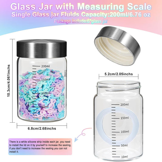 Glass Spice Jar Coffee Sugar Container Airtight Glass Jar Food Storage Canisters Bottle for Kitchen Seasoning Tea Herb Overnight Oats Bar Parfait Snacks (6 * 200ml(6.76oz))