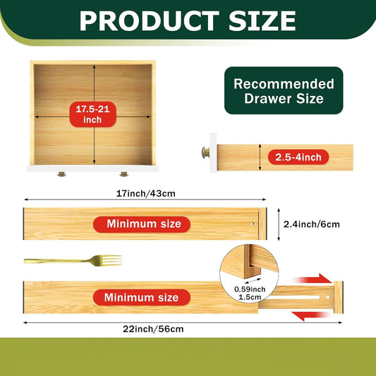 Lzerking Kitchen Drawer Dividers 6 Pack, 17-22" Adjustable Bamboo Drawer Organizers Large, Spring Loaded, Expandable Utensil Organizer, Works in Kitchen, Dresser, Closet, Bathroom, Bedroom