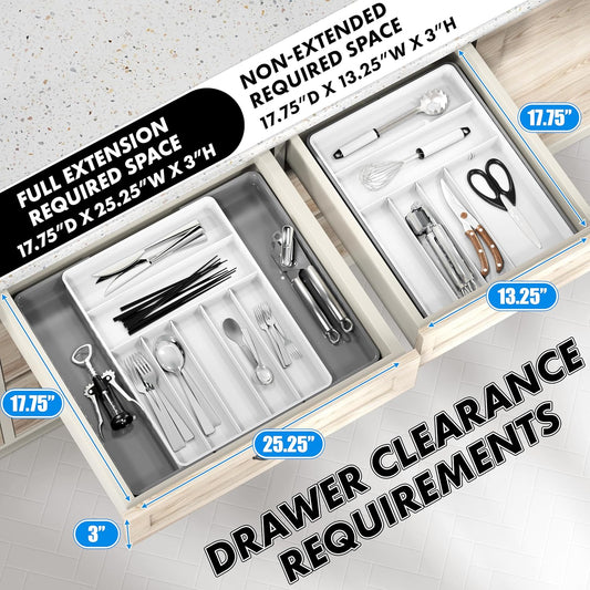 Simple Houseware Expandable & Adjustable Cutlery Drawer Organizer - Large Utensil and Flatware Tray for Kitchen Drawers, White