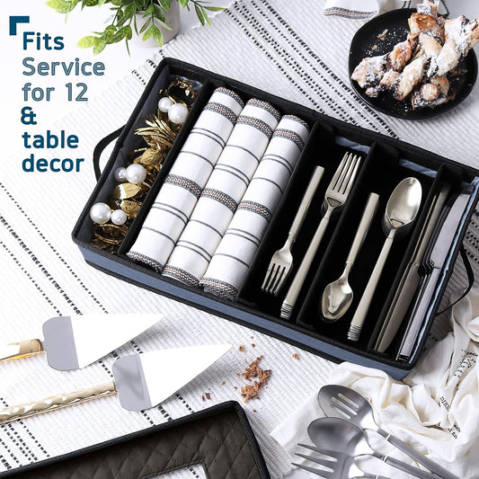 Flatware & Utensil Storage, Durable Silverware Storage Box with Padded Dividers, 5 Compartment Flatware Storage Case, Silverware Case with Handles, Protects and Organizes Cutlery, Blue