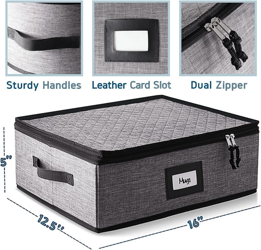Coffee Mug Storage, 2 Pack Quilted and Stackable Coffee Cup Storage Organizer for Service of 24, Mug Storage Box with Dividers, China Containers Hard Shell for Moving and Organization, Grey