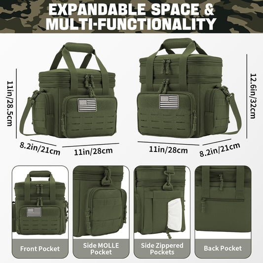 QT&QY Tactical Lunch Box for Men Expandable 18L Heavy Duty Military Insulated Cooler Bag, Leakproof Thermal Lunch Bag for Work Camping Outdoor Picnic Pail Adult Meal MOLLE Webbing Green