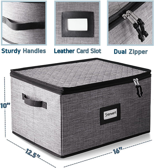 Fine China Storage Containers, 8 Piece Quilted Dish Storage Containers for Flatware & Utensil, Mug, Platter and Wine Glass with Felt Dividers, Durable Dinnerware Dish Organizers for Moving, Grey
