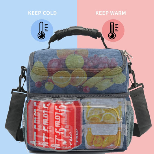 FlowFly Double Layer Cooler Insulated Lunch Bag Adult Lunch Box Large Tote Bag for Men, Women, With Adjustable Strap,Front Pocket and Dual Large Mesh Side Pockets