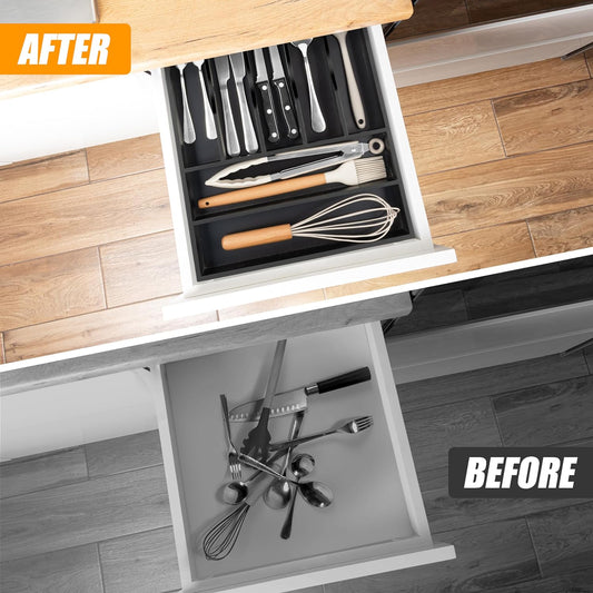 Silverware Drawer Organizer - Expandable Deep Utensil Organizer for Kitchen Drawers(13"-22.4" x 15", Black)