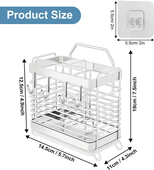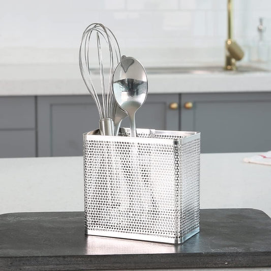 LENITH Kitchen Utensil Chopsticks Perforated Holder with Hooks - 304 Stainless Steel Storage for Organizer Dishwasher Safe (Large Rectangle)