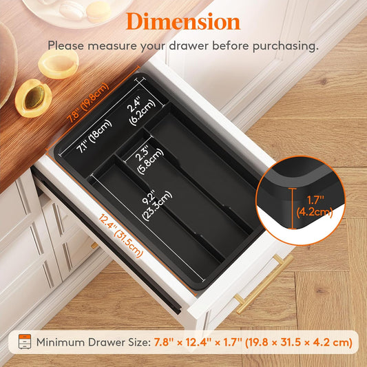 Silverware Organizer Kitchen Drawer Organizer Utensil Organizer Bamboo Silverware Holder Cutlery Organizer in Drawer Flatware Organizer Tray(7 slots, Black