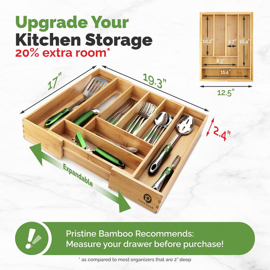 PALM NAKI Silverware Organizer Premium Bamboo Cutlery Organizer Tray - Kitchen Drawer Organizer for Silverware, Utensils - Flatware Organizers - Kitchen Organization (Natural Classic, 7 Slots)