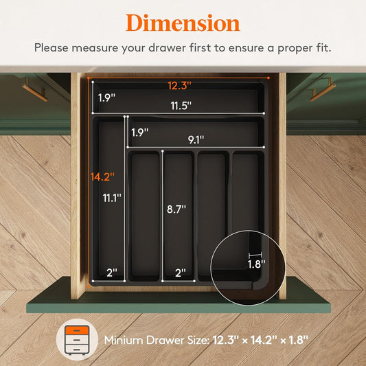 Silverware Organizer - Kitchen Drawer Organizer and Utensil Organizer - Cutlery Tray – Flatware, Utensil and Silverware Holder - Silverware Tray for Drawer (5-Slots, Black)