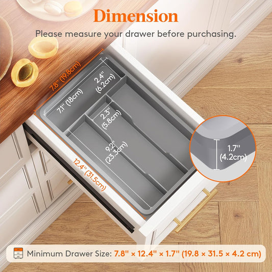 Lifewit Silverware Tray, Cutlery Drawer Organizer Storage for Kitchen, Plastic Flatware Utensil Holder Divider for Spoons Forks Knives Tableware, 4 Compartment, Gray