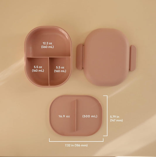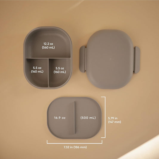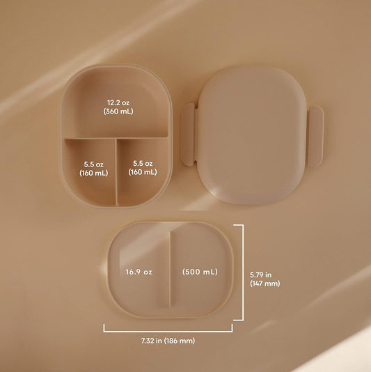 Ullabelle Leak Proof Bento Box Food-Grade Silicone Bento, BPA, Phthalate, Lead, & PVC Free - Bento Lunch Box for Daycare, Kids, & Adults - Leak Resistant Sets With Lids Snack Box Container (Beige)
