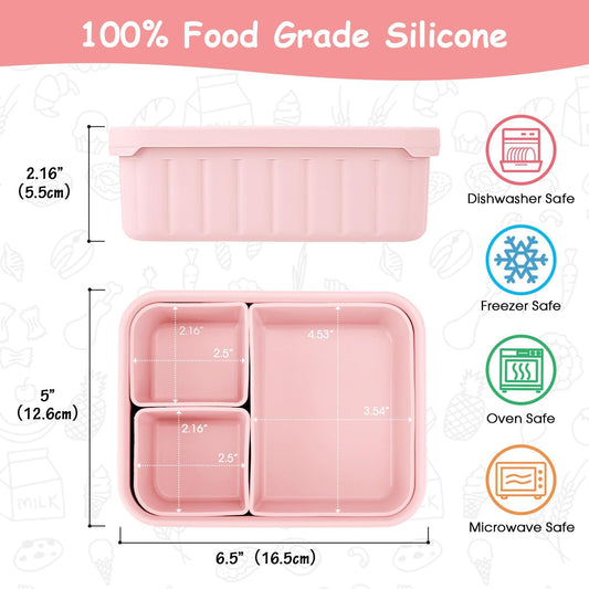 Ullabelle Leak Proof Bento Box Food-Grade Silicone Bento, BPA, Phthalate, Lead, & PVC Free - Bento Lunch Box for Daycare, Kids, & Adults - Leak Resistant Sets With Lids Snack Box Container (Pink)