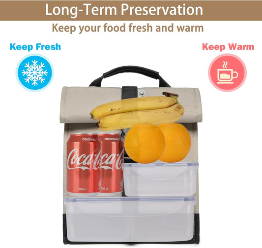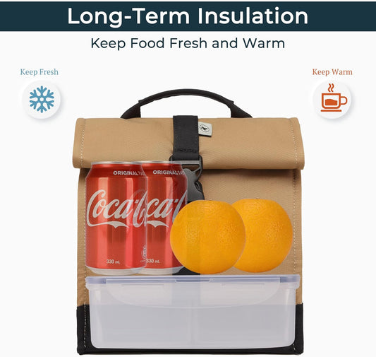SUNNY BIRD Insulated Lunch Bag Rolltop Lunch Box Tote Bag for Women, Men, Adults and Teens (Brown)