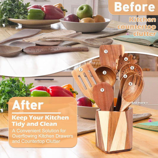 Kitchen Utensils Holder for Countertop: Wooden Utensil Crocks - Cooking Spoons Organizer