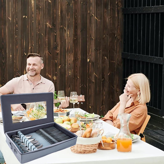 Zippered Silverware Storage Box, with Felt Lined and Clear Lid, Gray Fabric Chest Case for Storage and Organizing Utensils, Silverware, Flatware, Cutlery, Large Containers(No Cutlery Included)