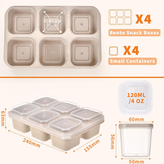4-Pack Bento Box & Snack Containers for Kids & Adults | 6-Compartment with 4 Sauce Cups | BPA-Free, Dishwasher Safe | Ideal for School, Office, Picnic & Travel (38oz/1100ml)