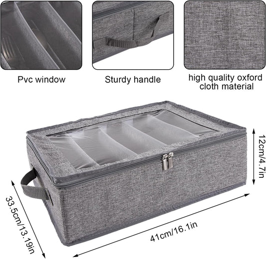 Hearth & Harbor Coffee Mug Storage, Quilted and Stackable Coffee Cup Storage Organizer for Service of 12, Mug Storage Box with Dividers, China Containers Hard Shell for Moving and Organization, Grey