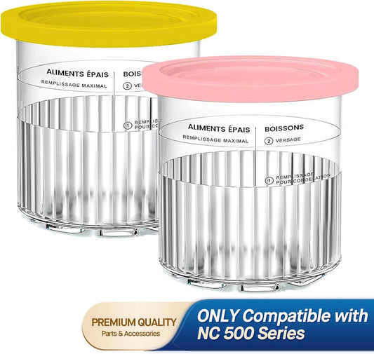For Ninja Creami Deluxe NC500 NC501 Series Ice Cream Makers, BPA-Free & Dishwasher Safe, 24oz Pints with Lids 2 Pack, Replacement Creami Deluxe Pint Containers(Yellow&Pink)