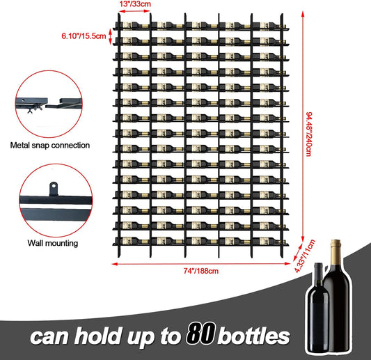 Wine Rack Freestanding Floor, 16 Tier 80 Bottle Capacity Display Holder, Black Industrial Wine Bottle Storage Shelves, for Any Bar, Wine Cellar, Kitchen, Dining Room (Black, 5 Column)