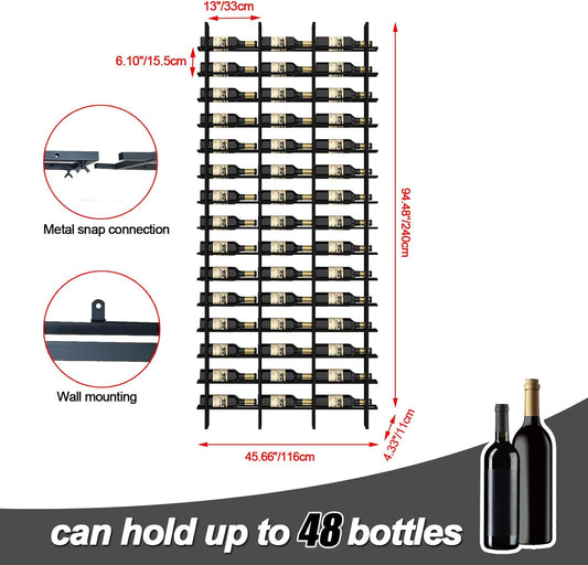 Wine Rack Freestanding Floor, 16 Tier 48 Bottle Capacity Display Holder, Black Industrial Wine Bottle Storage Shelves, for Any Bar, Wine Cellar, Kitchen, Dining Room (Black, 3 Column)