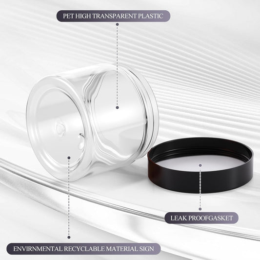 SATINIOR 6 Pack 2 oz Plastic Jars Containers with Lids Wide-mouth Refillable Leakproof Reusable Round Empty Jars for Travel Cosmetic Dry Food Spice Candy Cookie Home Kitchen Organizing (Clear)