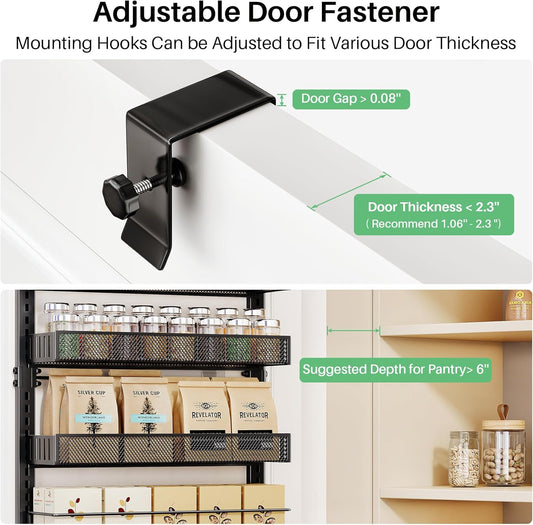 Over the Door Pantry Organizer - 8 Tier Adjustable Hanging Door Spice Rack, Large Capacity for Kitchen Pantry Storage (Black)