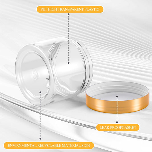 SATINIOR 6 Pack 2 oz Plastic Jars Containers with Lids Wide-mouth Refillable Leakproof Reusable Round Empty Jars for Travel Cosmetic Dry Food Spice Candy Cookie Home Kitchen Organizing(Gold)