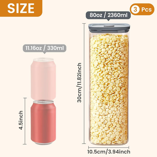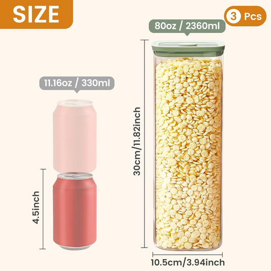 Square Glass Food Storage Jars with Lids[Set of 3], Perfect for Pasta, Cookies, Nuts, Coffee, Cereal, Flour, Organize Your Kitchen with these BPA-Free Glass Jars with Silicone Lids