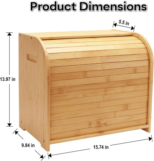 Bread Box for Kitchen Countertop, Double Layer Bamboo Bread Storage Container for Homemade Bread, Roll Top Bread Box with 3 Adjustable Height for Kitchen Counter, Natural Breadbox Organizer