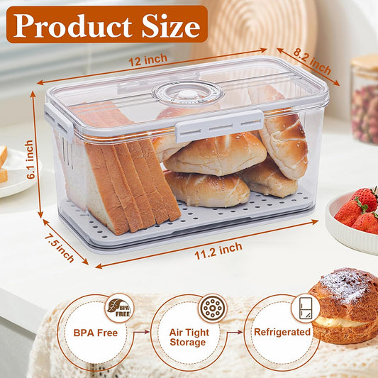 Bread Box for Homemade Bread Boxes for Kitchen Counter Airtight, Time Recording Bread Storage Container with Lid, Bread Containers Storage Airtight Loaf Bread Keeper, White