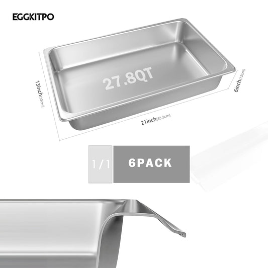 Hotel Pans Full Size 6-Pack 4 Inch Stainless Steel Trays for Food Commercial Hotel Pan Food Containers Chafing Pans For Restaurant Buffet Party Supplies