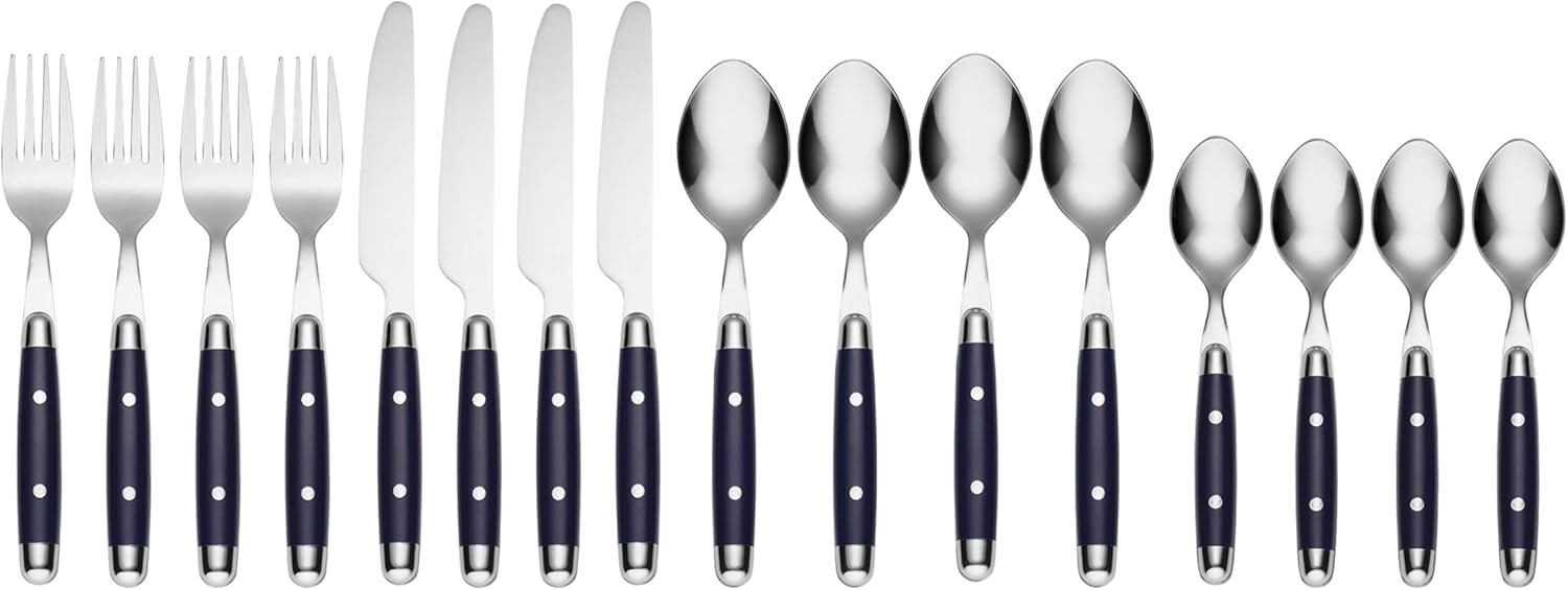 - WHAT IT’S MADE OUT OF: The Cambridge Jubilee Blue 16-piece flatware set is made of high-quality 18/0 stainless steel for everyday durability and rust-resistance.