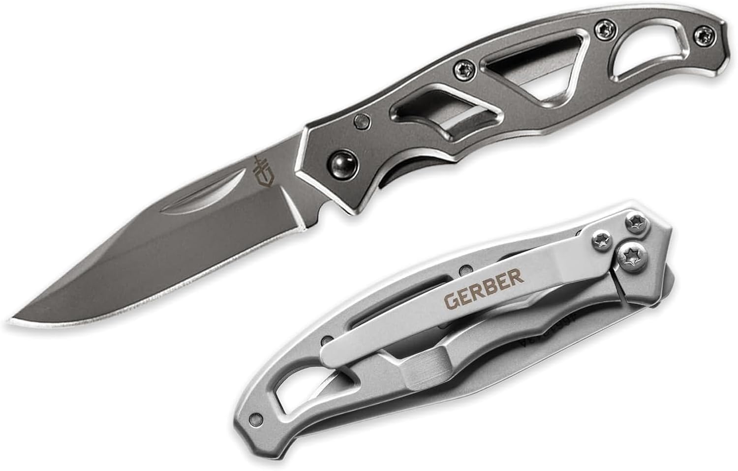 - DURABLE EDC GEAR: The Gerber Paraframe Mini folding pocket knife features a 2.2" plain edge stainless steel clip point blade with nail nick, pocket clip for everyday carry, and a frame lock handle design