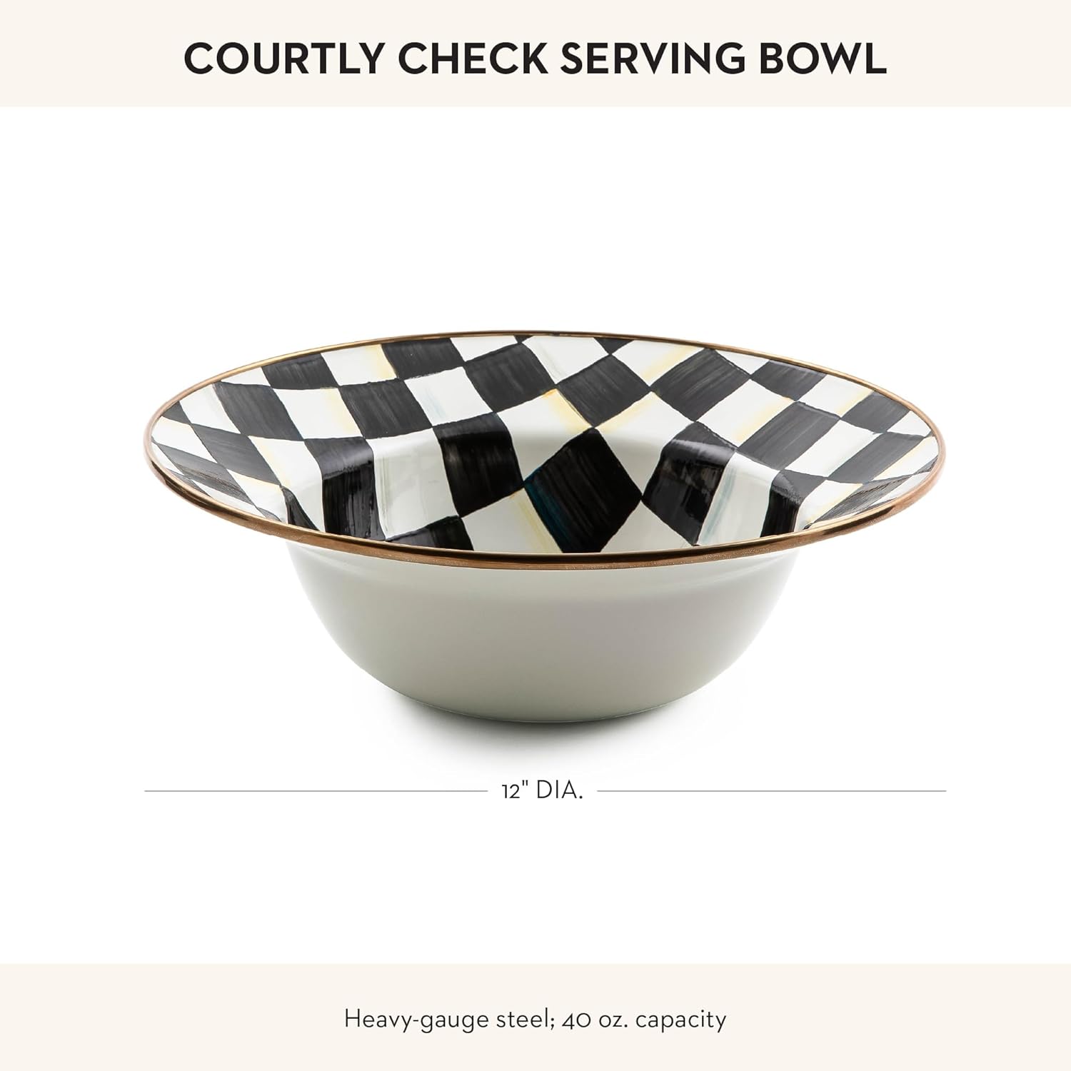 MACKENZIE-CHILDS Enamel Serving Bowl, Enamel Serveware Bowl, 12 Inches, Black-and-White Courtly Check