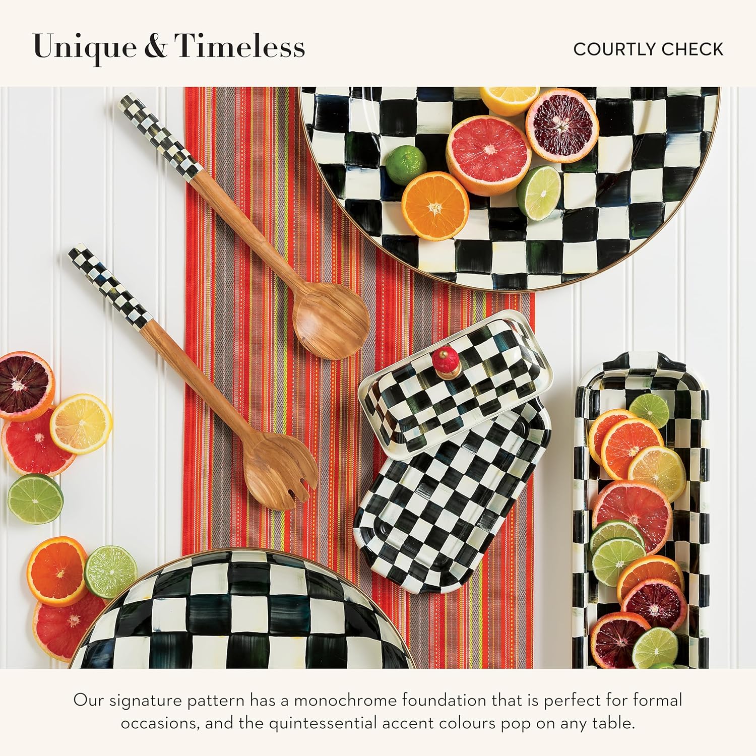 MACKENZIE-CHILDS Enamel Serving Platter, Decorative Serving Platter for Food, 16 Inches, Black-and-White Courtly Check