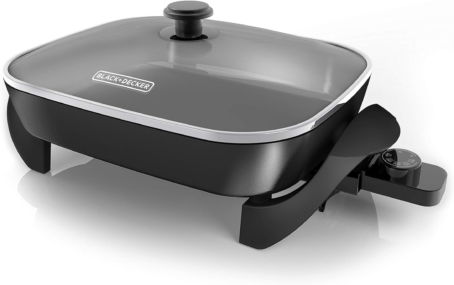 BLACK+DECKER Electric Skillet, Variable Temperature Control, Nonstick Cooking Surface, Dishwasher Safe, Tempered Glass Lid, 12"x15"