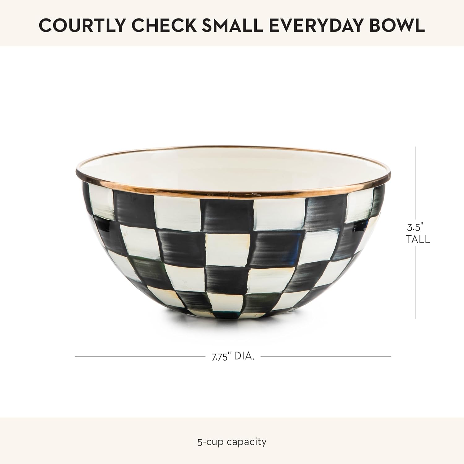 - ELEGANT ESSENTIAL: Elevate any meal with this decorative bowl. It has a hand-glazed heavy-gauge steel underbody and a bronzed stainless-steel rim and is decorated with hand-painted black-and-white checks.