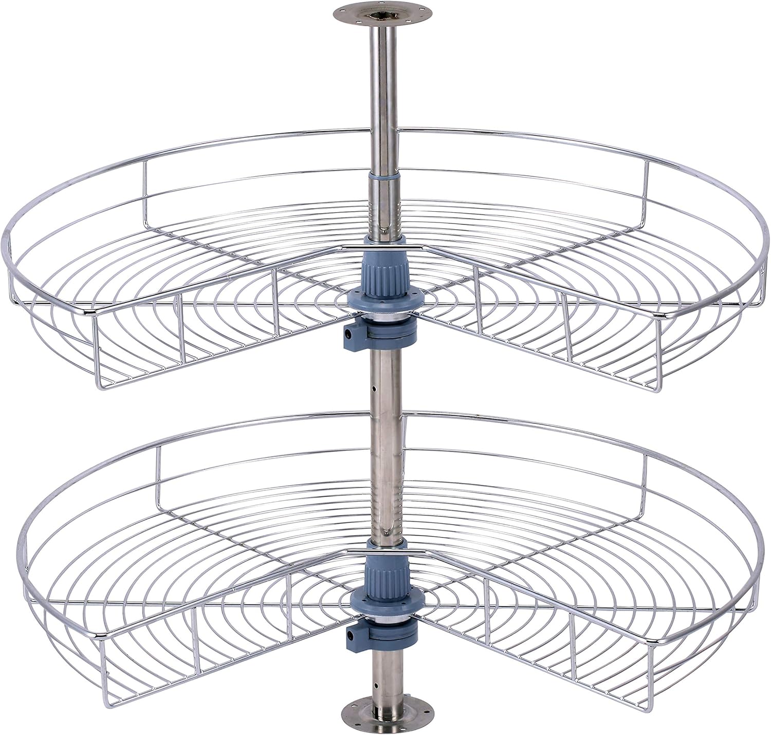 Dowell 28" Kidney Lazy Susan, 2 Shelves, Kitchen Base Corner Cabinet Organizer (Chrome 4001 270 28)
