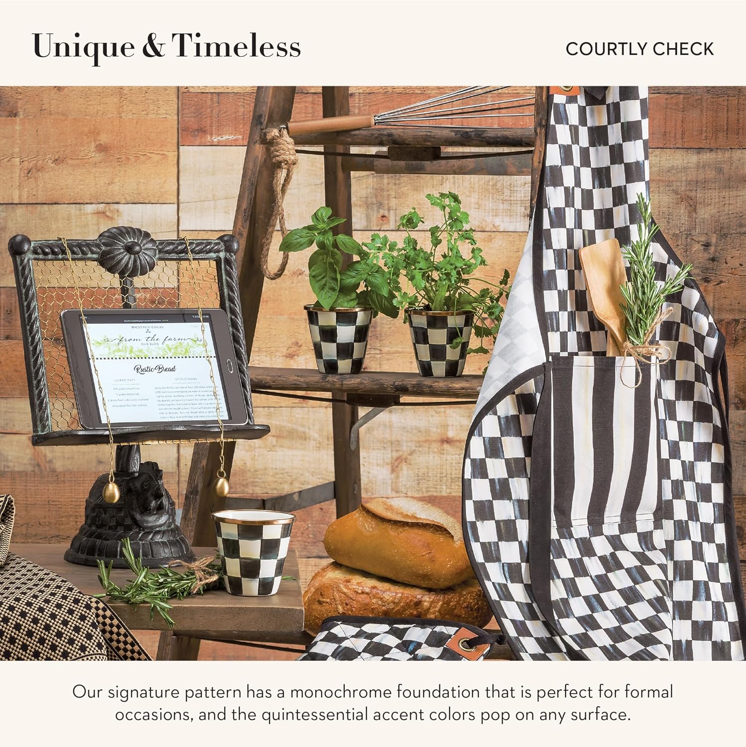 MACKENZIE-CHILDS Enamel Herb Pots, Small Plant Pots for Herbs or Flowers, Set of 3, Black-and-White Courtly Check