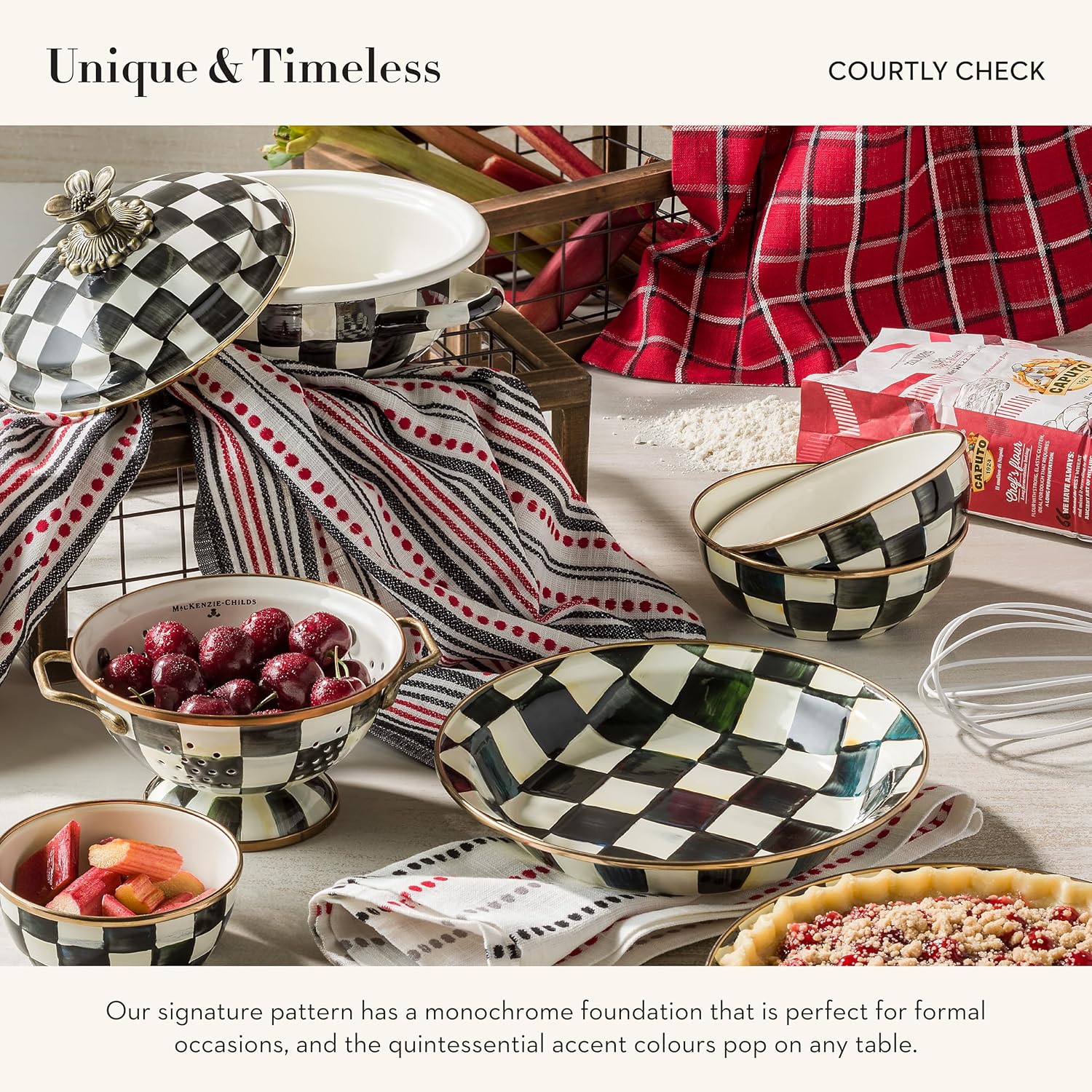 MACKENZIE-CHILDS Enamel Everyday Bowl, Serving Bowl for Entertaining, Extra-Small, Black-and-White Courtly Check, Set of 1